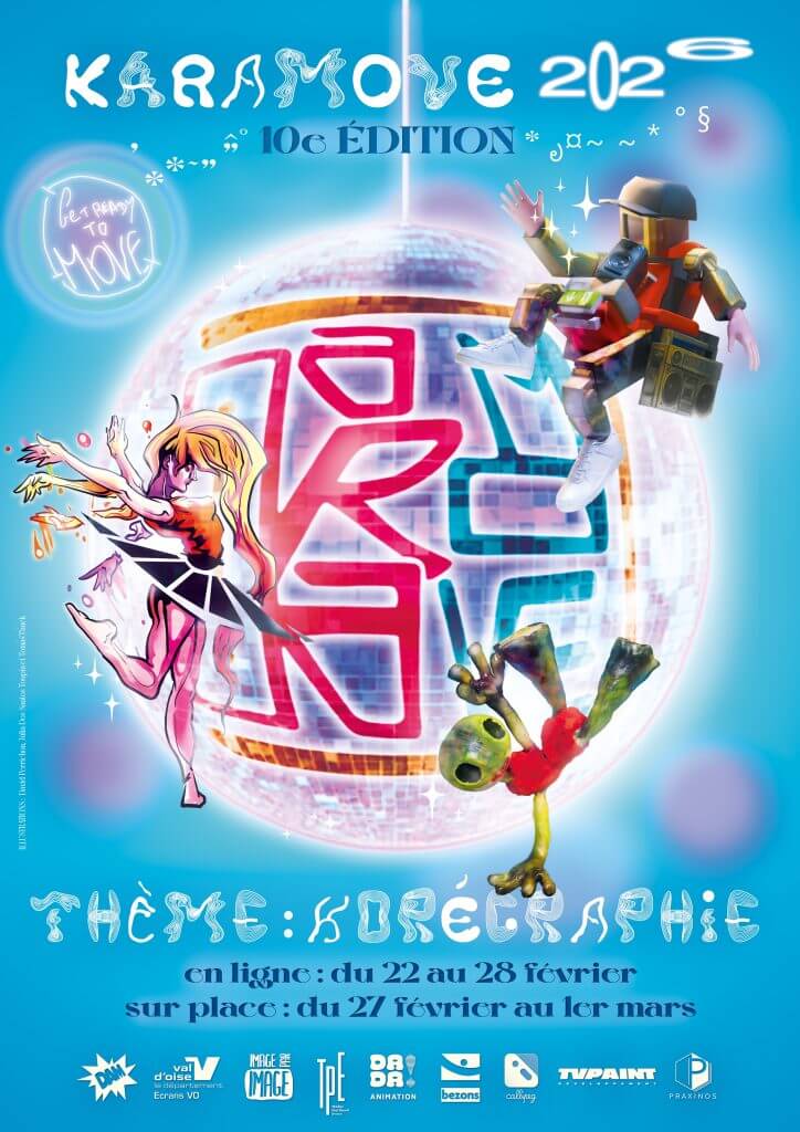 Le Karamove est un défi consistant à réaliser un clip réunissant une multitude de techniques de cinéma d’animation possibles : 3D, 2D, stop motion… Sur le principe du cadavre exquis, chaque groupe, formé d’animateur.rices étudiant.e.s et professionnel.le.s de tous les horizons, créent leur séquence animée à partir d’une musique originale. Pour sa 10ème édition, Karamove se consacre cette année au thème “Korégraphie”.