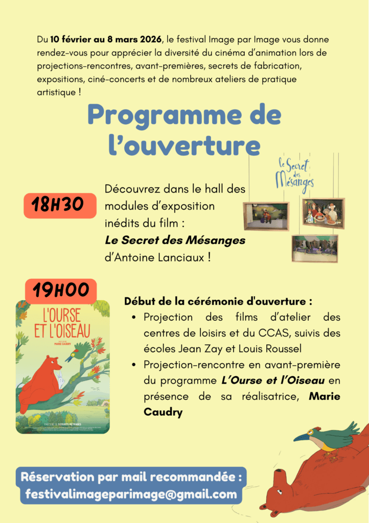 Du 10 février au 8 mars 2026, le festival Image par Image vous donne rendez-vous pour apprécier la diversité du cinéma d’animation lors de projections-rencontres, avant-premières, secrets de fabrication, expositions, ciné-concerts et de nombreux ateliers de pratique artistique !